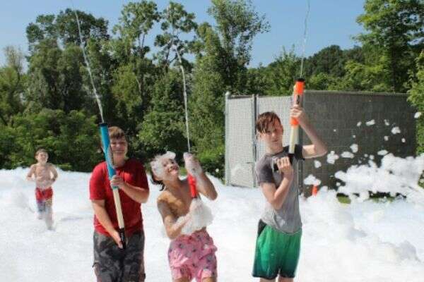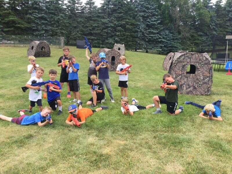 Variety of Activities: Choose from axe throwing, video game trailers, laser tag, archery tag, foam parties, water wars, glitter and airbrush tattoos, and inflatables like Hippo Chow Down and Big Throw Down.